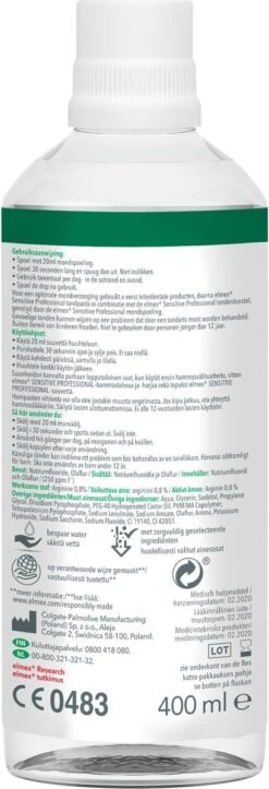 De elmex Mondwater Sensitive Professional, met arginine, zorgt voor een effectieve verlichting voor gevoelige tanden, heeft een milde smaak en brengt een beschermend laagje op de tanden aan. Deze mondwater bevat een exclusieve formule die gebaseerd is op de klinisch bewezen PRO-ARGIN® technologie die tandartsen hun patiënten adviseren om de pijn van gevoelige tanden te verzachten. Het sluit de kanaaltjes af die naar gevoelige tandzenuw leiden, zodat de pijn direct en langdurig wordt gestopt. Deze elmex mondspoeling bevat aminfluoride tegen cariës.