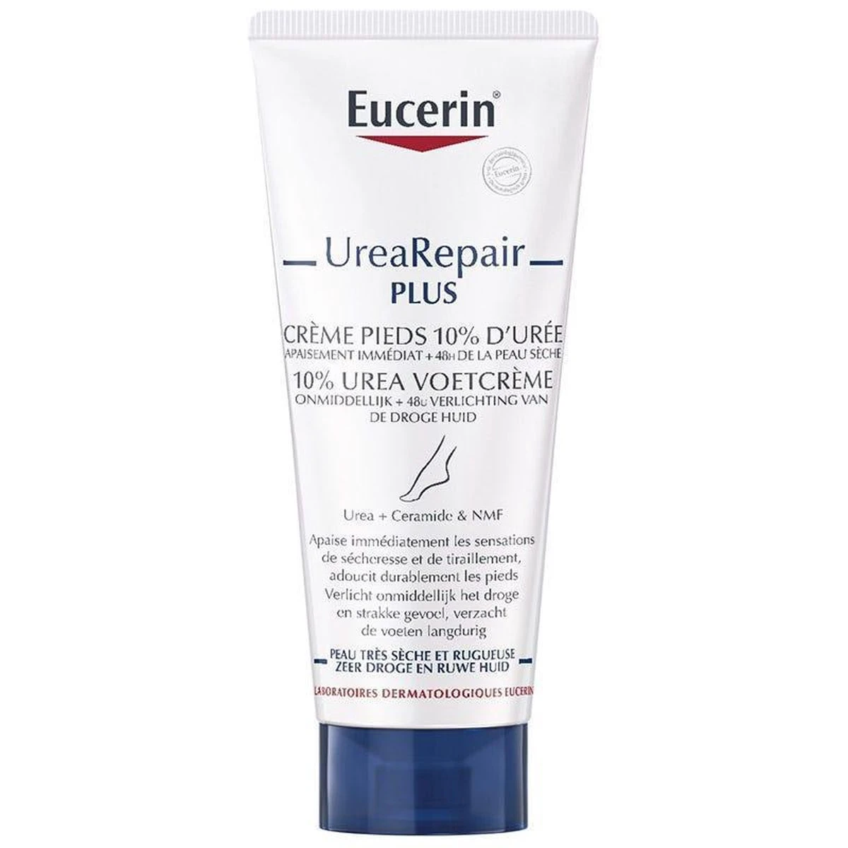 Eucerin UreaRepair PLUS Voetencrème 10% Urea geeft droge tot extreem droge voeten, met of zonder gebarsten hielen, de intensieve verzorging die ze nodig hebben. Ook helpt het om verdikte huid en eelt te verminderen.