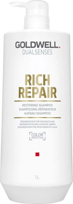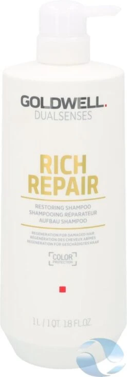 Goldwell Dualsenses Rich Repair Restoring Shampoo is een herstellende shampoo speciaal voor beschadigd haar. Het haar kan beschadigd raken door warme stylingtools maar ook door dagelijkse handelingen als het borstelen van het haar of schadelijke straling van de zon. De Goldwell Dualsenses Rich Repair shampoo biedt een milde reiniging en verbetert de haarstructuur permanent, ook zorgt de shampoo er voor dat de haarkleur langer mooi blijft. De shampoo maakt gebruik van pashima-zijdeproteïnen en zorgt daarnaast voor een prachtige, subtiele glans.