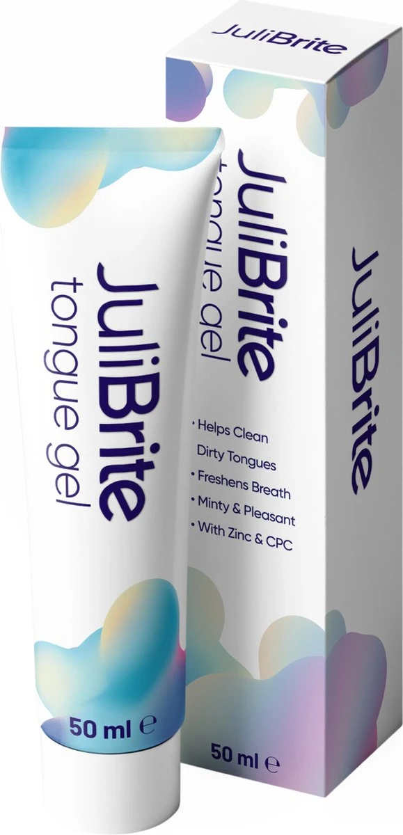 - Verwijdert de aanslag van je tong. JuliBrite Tong Gel haalt de vieze aanslag van je tong weg. Niet meer die vieze witte aanslag, maar een mooie, gezonde, roze tong dus.