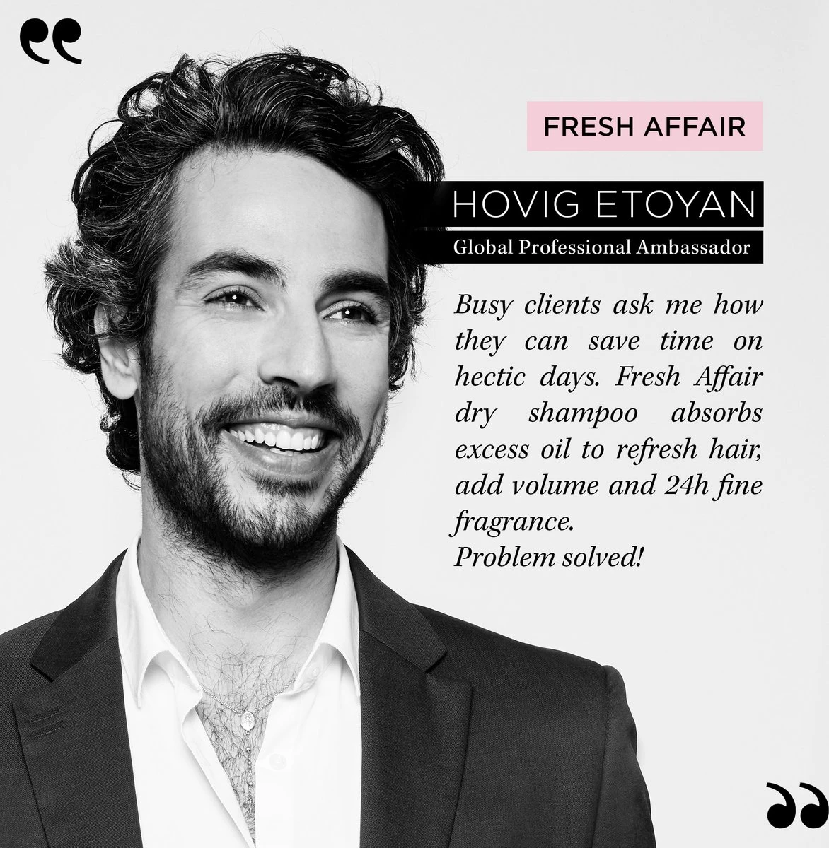 Fresh Affair is je ultieme geheime wapen voor second-day haar, touch-ups voor na de workout en wanneer je een snelle opfrisbeurt nodig hebt. Gebruik het ook naast het föhnen om olieachtige wortels te voorkomen, of voordat je naar bed gaat zodat ’s nachts talg opgenomen kan worden.
