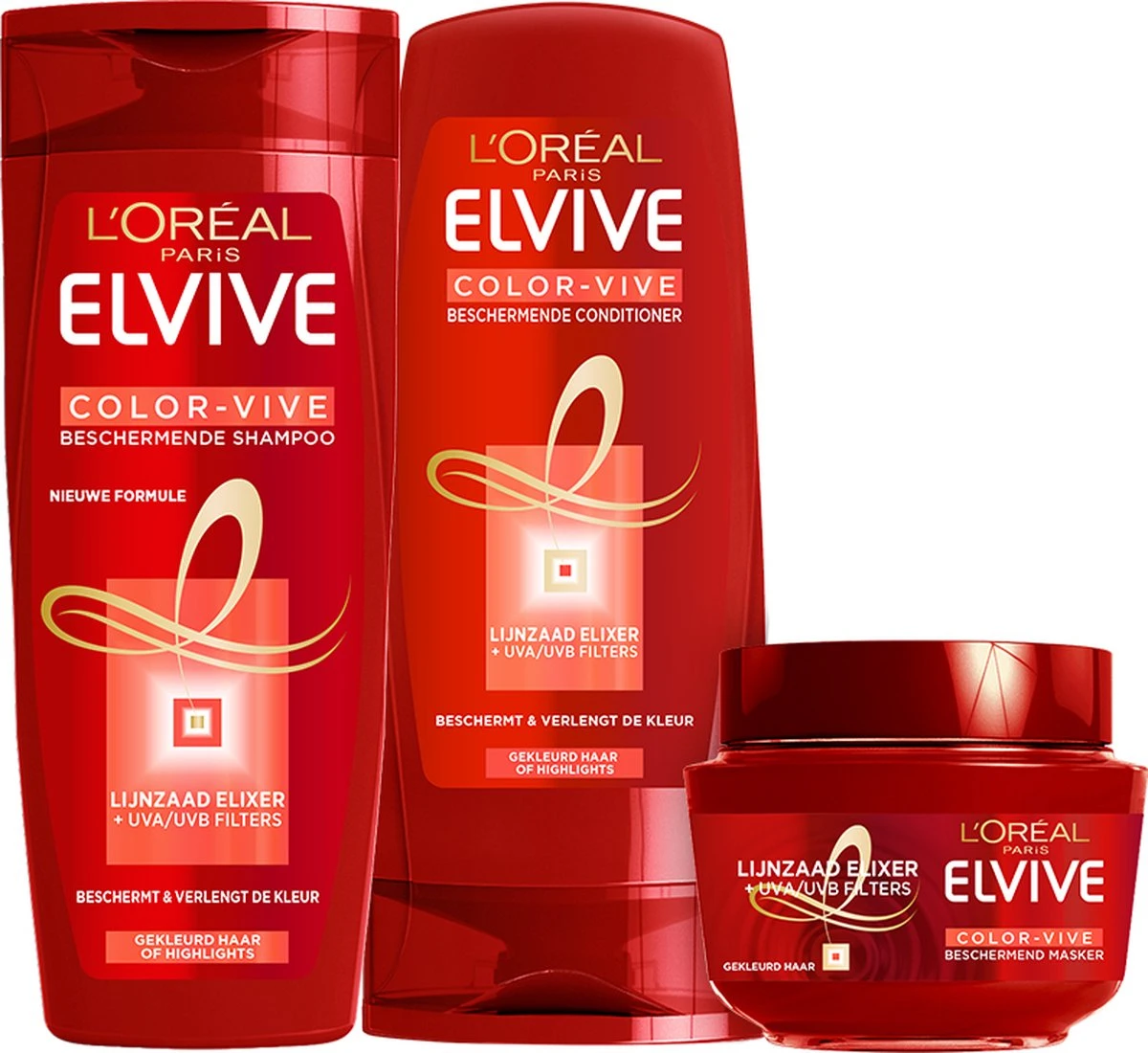 Gekleurd haar is zeer gevoelig voor schadelijke invloeden van buitenaf. Als gevolg van herhaaldelijk wassen, UV-straling en vervuiling kan de kleur langzaam vervagen. De kleurtoon verandert en het haar verliest kleurintensiteit en glans. De formule van ELVIVE COLOR VIVE, met lijnzaad elixer en UV-filters, heeft een drievoudige werking om gekleurd haar nog beter uit de verf te laten komen: