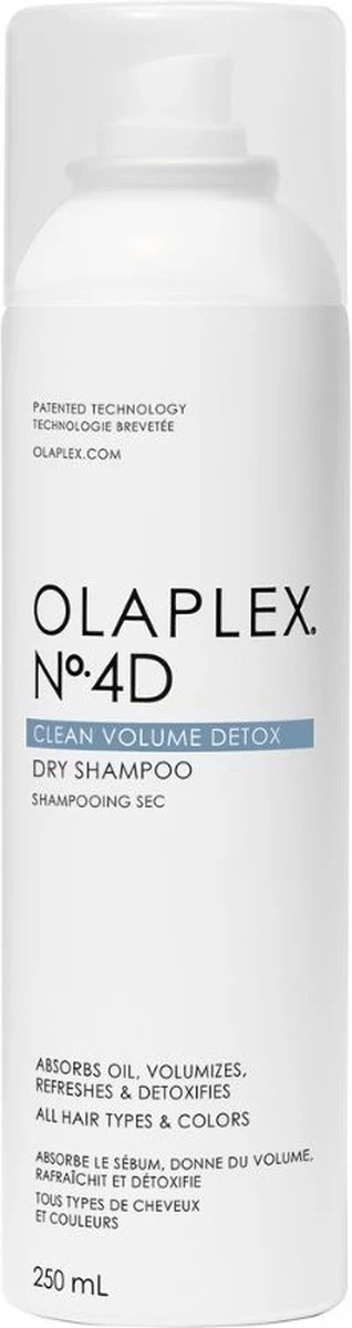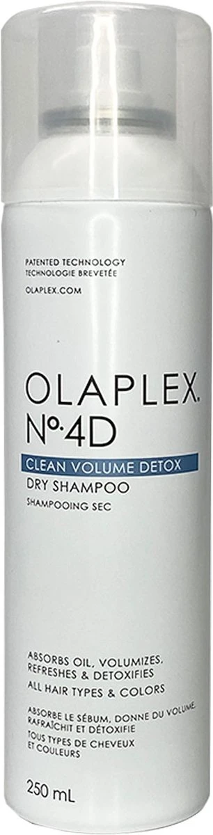 OLAPLEX No.4D Clean Volume Detox Dry Shampoo is een innovatieve, volumineuze droogshampoo met ingrediënten die helpen bij een gezonde hoofdhuid. No.4D Clean Volume Detox is een formule die ervoor zorgt dat de hoofdhuid een frisse conditie heeft en zorgt tussen de wasbeurten door ervoor dat de hoofdhuid ontgift en gezond blijft. Rijstzetmeel absorbeert overtollige olie om opbouw te voorkomen. En andere ingrediënten hebben een kalmerende werking. Het haar voelt net gewassen, schoon, volumineus en zacht aan zonder dofheid, stijfheid of schadelijke droogheid en opbouw. Je kunt deze droogshampoo ook perfect gebruiken om textuur en volume te creëren. Het stoot geurtjes en schadelijke stoffen af zonder de poriën te verstoppen.