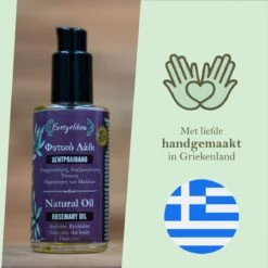 Deze heerlijke rozemarijnolie van Evergetikon is gemaakt van 100% natuurlijke ingrediënten. De olie bevat bovendien geen water en bevat kwalitatieve Griekse olijfolie van de eerste persing.