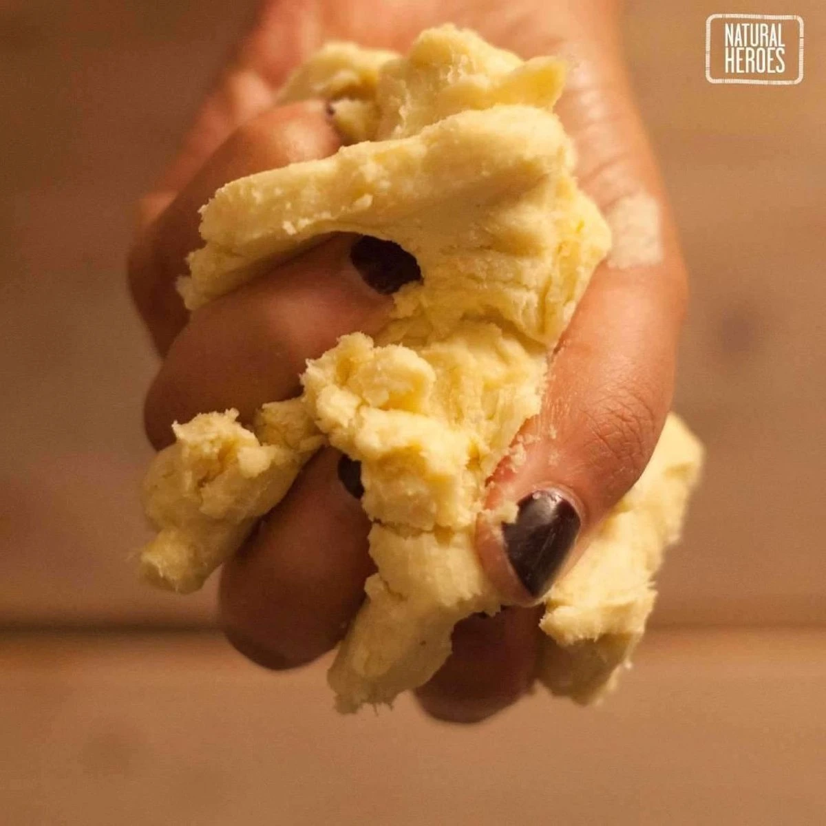 Onze Shea Butter is duurzaam geproduceerd, op natuurlijke wijze gewonnen en de enige raffinage die het ondergaat is bij aankomst in Nederland waarbij de Shea boter wordt gefilterd op steentjes en vuil/stof. Voor duizenden jaren extraheren vrouwen de butter uit de noten van de Shea Tree Vitellaria paradoxa. De bomen groeien in West-Afrika. De vrouwen daar zorgen voor de Shea-bomen en verzamelen de gevallen vruchten die zij in de zon laten drogen. Dit wordt op de traditionele manier gedaan. De vrouwen die de Shea Butter maken, maken deel uit van een vrouwencoöperatie. Zo wordt de traditionele wijze van werken gehandhaafd op een duurzame en eerlijke manier.
