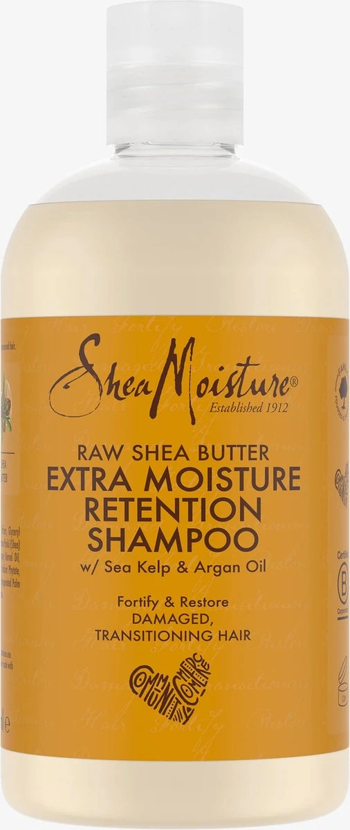 Shea Moisture Moisture Retention Shampoo is een rijke milde shampoo voor droog en beschadigd haar. Moisture Retention Shampoo is verrijkt met zee kelp, argan olie en shea butter die je haar en hoofdhuid schoon, versterkt en gevoed achter laat. Gebruiksaanwijzing: Aanbrengen op nat haar, laat schuimen en masseer tot de haarwortels om de hoofdhuid te stimuleren. Grondig uitspoelen. Herhaal indien nodig. Bevat geen sulfaat, parabens, phthalates, paraffin, propylene glycol, mineral oil, synthetic fragrance, PABA, synthetic color, DEA en is niet op dieren getest.