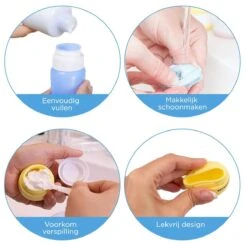 Ten opzichte van de standaard plastic reisflesjes of potjes zijn deze TRVLMORE siliconen reisflesjes en potjes veel handiger. Je kunt ze namelijk hergebruiken, eenvoudig schoonmaken en gemakkelijk navullen. Door de verschillende kleuren van de flesjes en potjes kun je de producten altijd goed onderscheiden. En dankzij het handige doseersysteem in de dop kun je gemakkelijk doseren, over lekkage hoef je je ook geen zorgen te maken want de flesjes zijn uitgerust met een anti-lek systeem. Ook voorkom je onnodige verspilling, door het zachte siliconen materiaal kun je gemakkelijk alles uit het flesje of potje knijpen, wel zo duurzaam!
