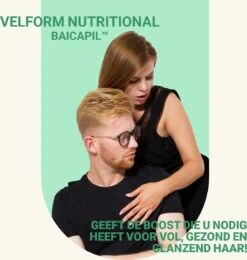 Bij haaruitval, dunnend wordend haar, kale plekken op de hoofdhuid en schilfers raden wij u zeker aan de Velform Nutritional te gebruiken. In tegenstelling tot andere anti haaruitval behandelingen bevat Nutritional de formules BAICAPIL® & ACB BioChelate B Complex™ en ook de vitamine B, Biotine. Deze krachtpatsers van haar verzorgende vitamine, proteïne en mineralen gaan u zeker helpen om haaruitval tegen te gaan en u weer de volle haarbos te geven waar u van droomt!